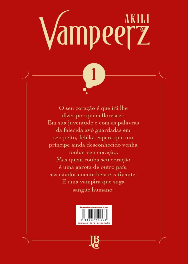 A Editora JBC acaba de lançar no Brasil o mangá Vampeerz, um sucesso dos mangás GL (Girls Love) que reimagina o universo dos vampiros com uma história de romance e humor entre Ichika, uma jovem humana, e Aria, uma vampira misteriosa. Publicado originalmente na revista mensal Sunday Gene-X no Japão, entre 2019 e 2023, Vampeerz promete encantar os leitores brasileiros com sua narrativa envolvente e arte deslumbrante de Akili.
