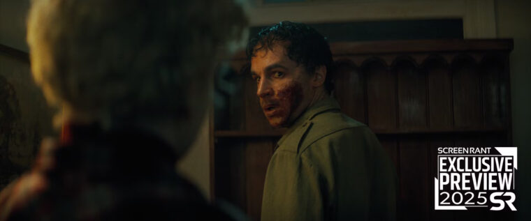 A Blumhouse, conhecida por suas produções de terror inovadoras e de sucesso, acaba de revelar uma imagem inédita do reboot do clássico “Lobisomem“. A foto, divulgada pelo ScreenRant, apresenta o protagonista Blake, interpretado por Christopher Abbott, no momento perturbador em que ele começa a se transformar na feroz criatura. A transformação ocorre após Blake ser atacado por um animal misterioso na fazenda de seu pai, prometendo uma narrativa rica em suspense e horror. Veja abaixo: