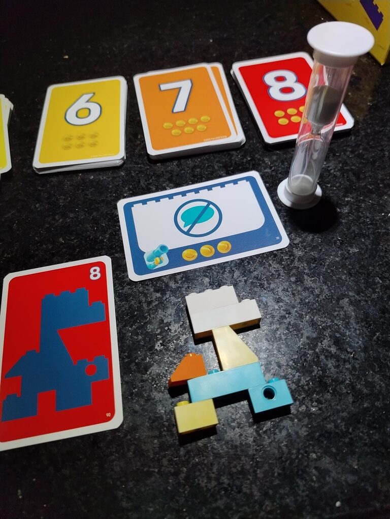 A pontuação é simples e justa: somente o time que conseguir montar a peça de forma idêntica à da carta pontua. E o valor da carta é determinado pelo número de blocos usados na construção — quanto mais complexa, mais pontos em jogo.