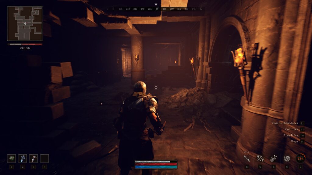 A jogabilidade de Dungeon Stalkers é uma mistura de RPG de ação com elementos de sobrevivência e exploração. O combate é tático e exige atenção: cada inimigo tem padrões de ataque distintos, e sair clicando freneticamente não vai te salvar. É preciso estudar o ambiente, usar armadilhas, aproveitar os pontos fracos dos monstros e, acima de tudo, saber quando recuar.