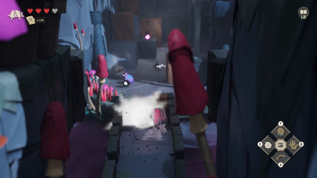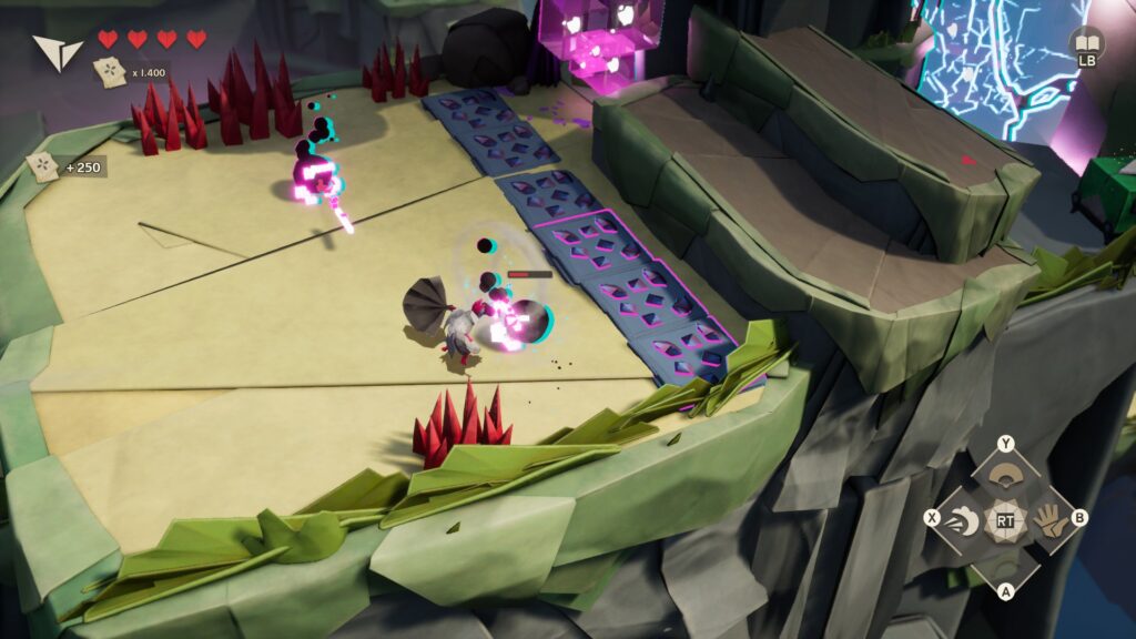 O design dos inimigos — criaturas digitais que contrastam com o mundo orgânico de papel — reforça o conflito central da história. Eles são pixelados, angulosos e muitas vezes perturbadores, criando uma tensão visual que funciona muito bem.