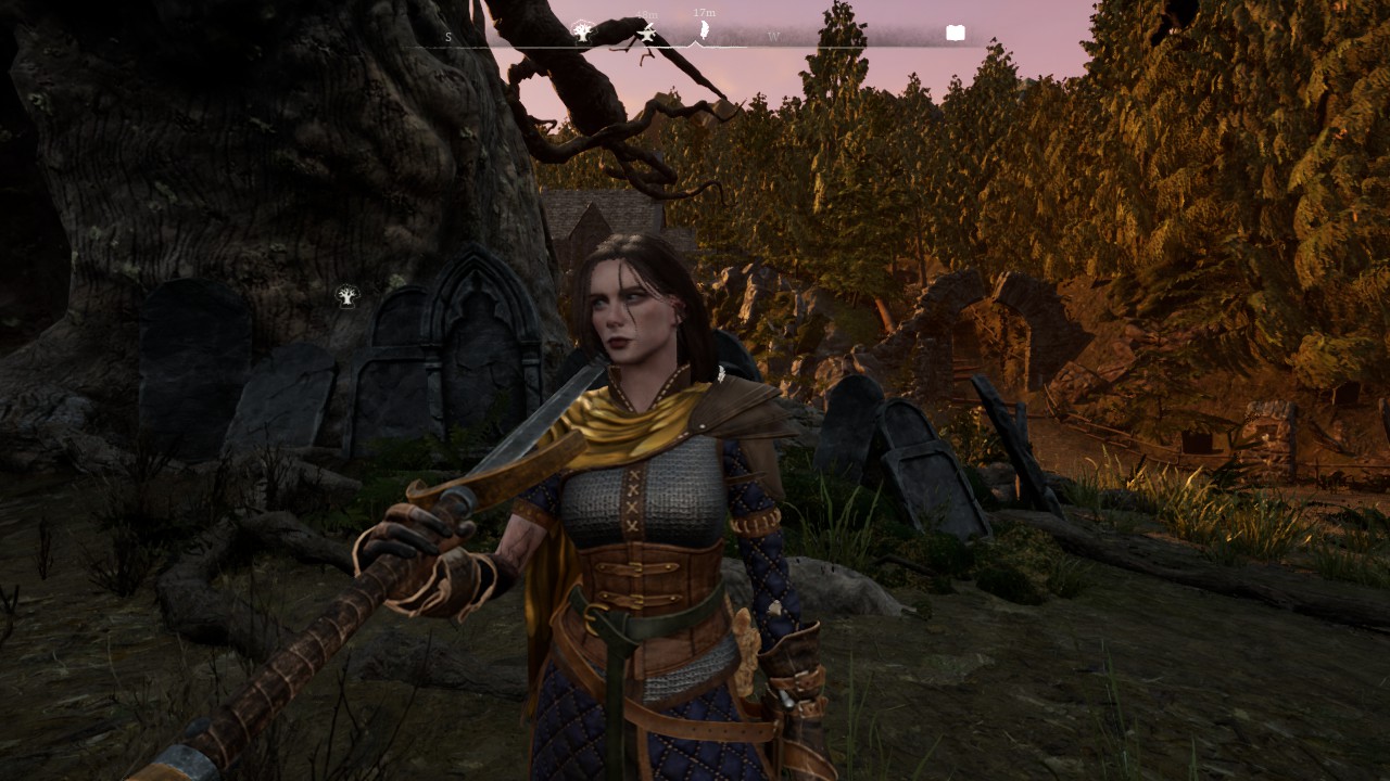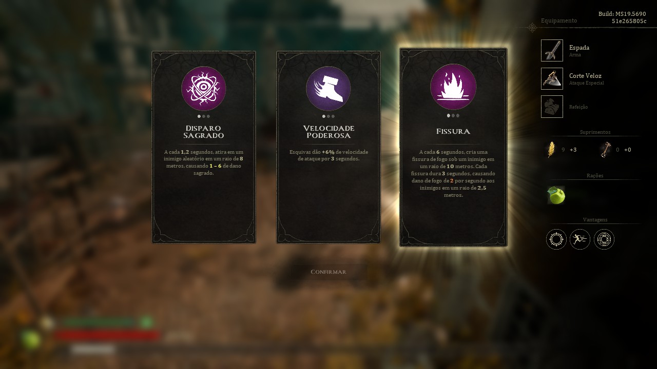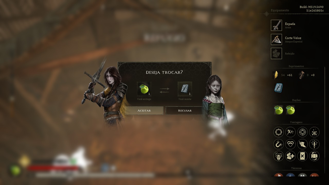 Hordes of Hunger nos coloca na pele de Mirah, uma guerreira que tenta proteger sua terra de uma “fome viva” — hordas de criaturas que consomem tudo em seu caminho. A premissa é direta, mas eficaz: o mundo está em ruínas, há sobreviventes a resgatar e segredos a serem desvelados aos poucos, principalmente através de interações com NPCs e diálogos com o pai da protagonista, que funciona como fio condutor da trama. Essa progressão narrativa é entregue em pequenas doses entre as sessões de combate, o que ajuda a manter o ritmo sem interromper a ação.