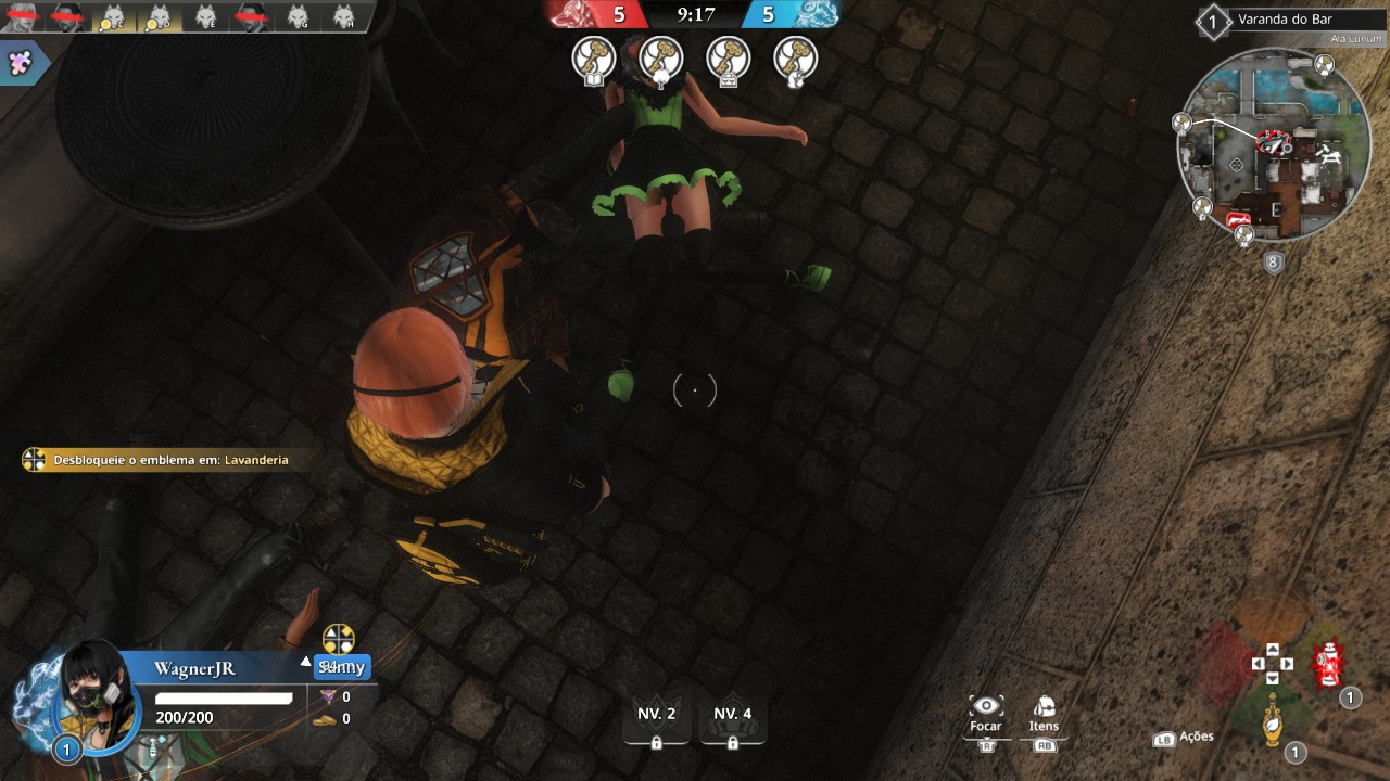 Os personagens são o grande destaque da ambientação. Há desde detetive, vaqueira, gamer até cosplay, e muitos deles só podem ser desbloqueados com o dinheiro obtido nas partidas. Isso incentiva o jogador a experimentar diferentes estilos e buscar evolução constante. A presença de um passe de batalha reforça essa estrutura de progressão contínua, oferecendo recompensas cosméticas e itens que ajudam a personalizar a experiência.