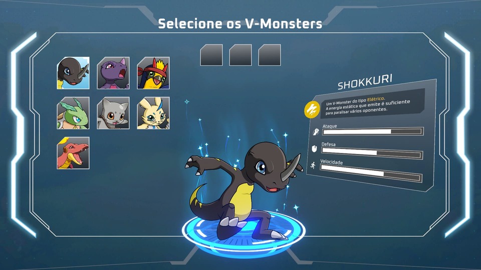 Os V‑Monsters, por sua vez, são o grande destaque artístico. Cada criatura possui design próprio, animações fluidas e evoluções que transformam não apenas sua aparência, mas também sua postura e personalidade. A equipe demonstra cuidado em criar monstros que parecem vivos, com identidade e presença.