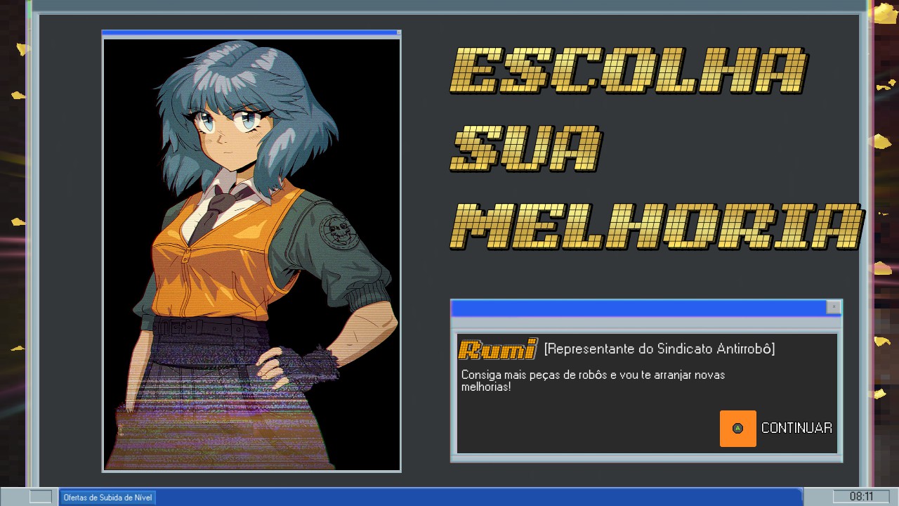 Ela é simples, mas bem-feita, e ajuda bastante na compreensão dos upgrades e menus — especialmente para quem está começando no gênero roguelite.