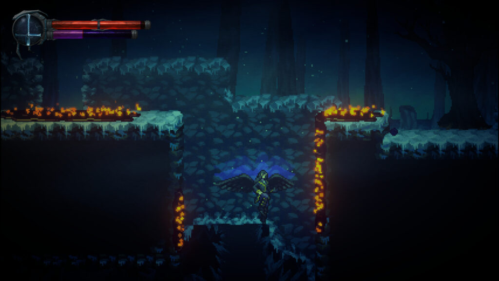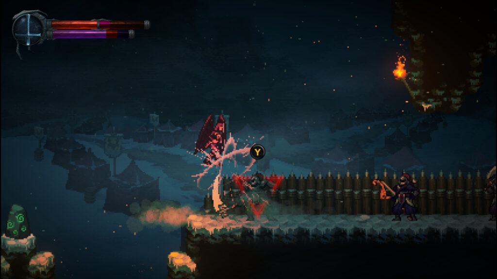 Os combates são responsivos, com animações fluidas e golpes que transmitem impacto. Não espere algo tão complexo quanto um Metroidvania moderno, mas sim uma experiência mais direta, com foco em fluidez e estilo. A inspiração em anime aparece claramente nos movimentos exagerados, poses dramáticas e efeitos visuais durante ataques especiais.