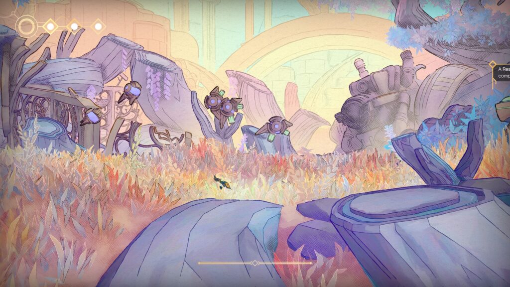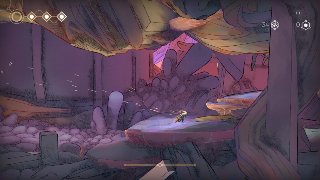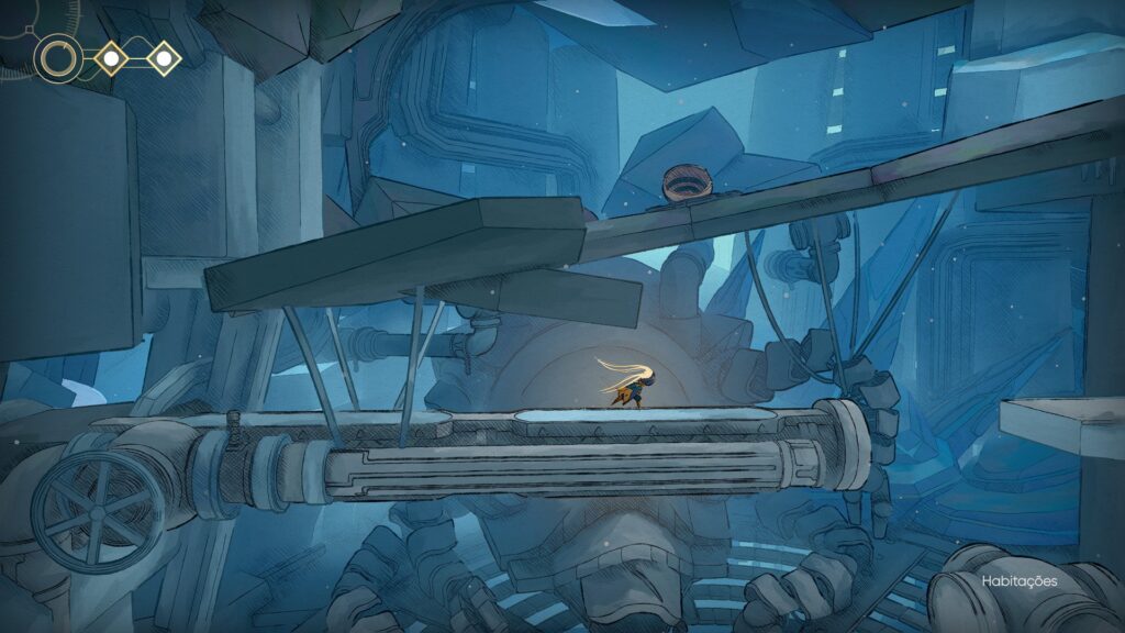 Como um bom metroidvania, MIO: Memories in Orbit aposta em um mundo interconectado, onde novas habilidades desbloqueiam caminhos antes inacessíveis. O jogo oferece uma variedade de poderes que tornam a movimentação fluida e estratégica.