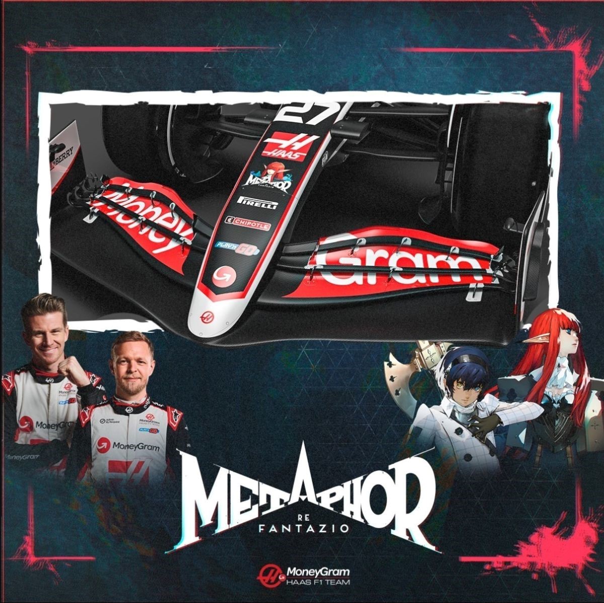 A MoneyGram Haas F1 Team anunciou uma nova parceria com o RPG de fantasia Metaphor: ReFantazio, da ATLUS, para o Grande Prêmio de Singapura em 22 de setembro de 2024. O jogo, que está prestes a ser lançado, será representado nos carros de corrida da equipe americana, trazendo entretenimento de jogos para o mundo das corridas.