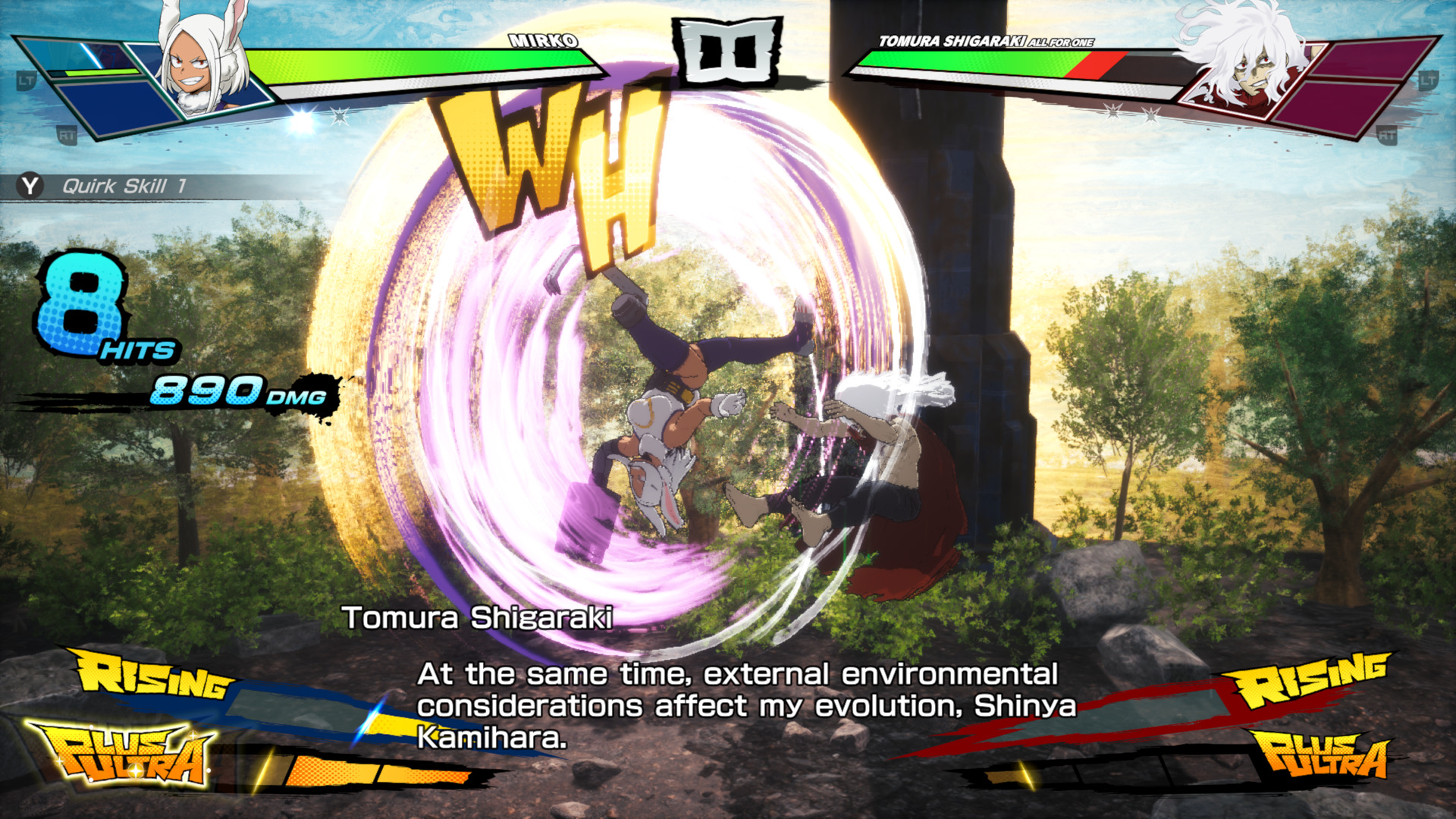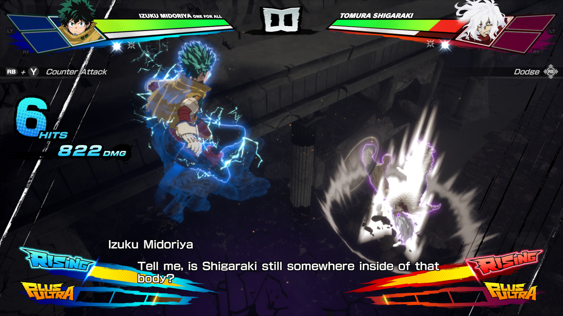 A proposta narrativa de All’s Justice é clara: revisitar o arco final do anime, aquele momento em que heróis e vilões chegam ao limite físico e emocional. O jogo abraça essa fase derradeira com seriedade, trazendo uma ambientação carregada de tensão, destruição e urgência. Para quem acompanha a obra, é impossível não sentir o peso dos acontecimentos — e o jogo faz questão de reforçar isso com cenas bem dirigidas e um ritmo que alterna entre batalhas explosivas e momentos de reflexão.