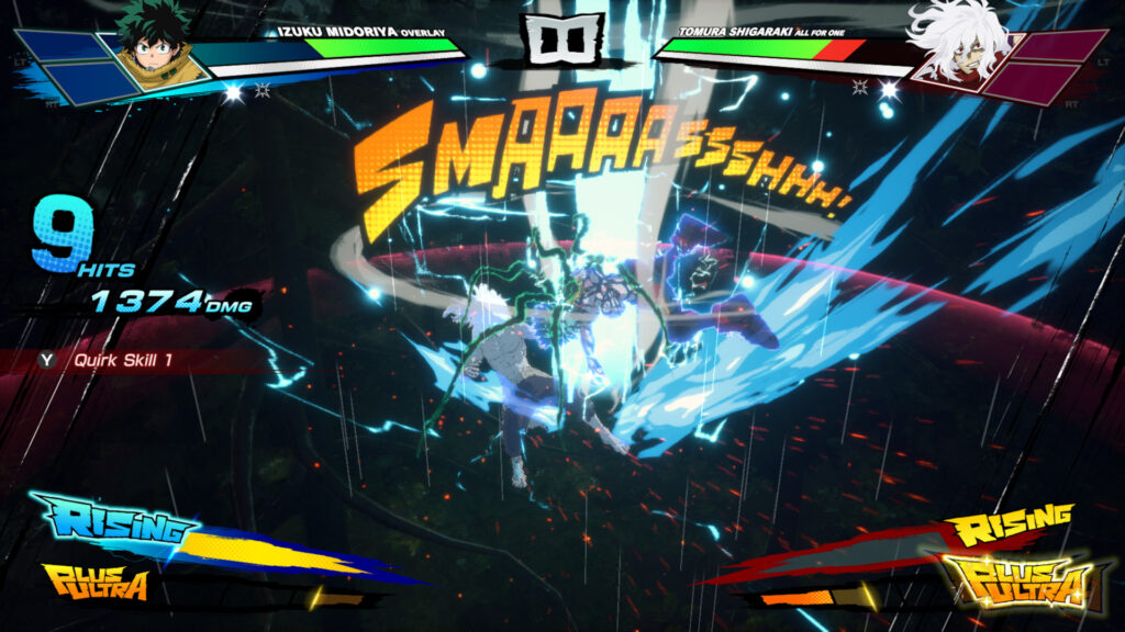Cada personagem possui um conjunto de golpes inspirado diretamente em seus poderes no anime. Isso significa que Deku é rápido e agressivo, Bakugo é explosivo e imprevisível, Shigaraki é destrutivo e perturbador, e assim por diante. A variedade de estilos é um dos pontos fortes do jogo, incentivando o jogador a experimentar diferentes formações e sinergias.
