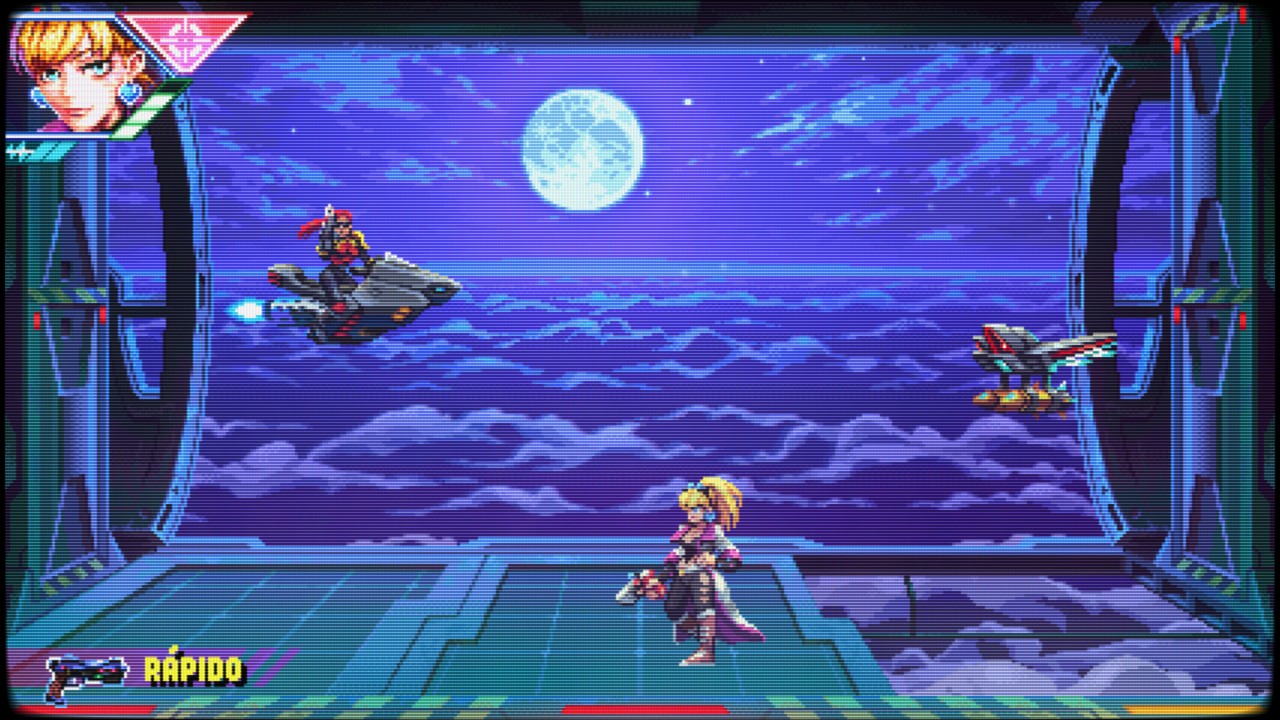 - Mecânicas variadas (run 'n' gun, beat 'em up, parry, troca de planos)