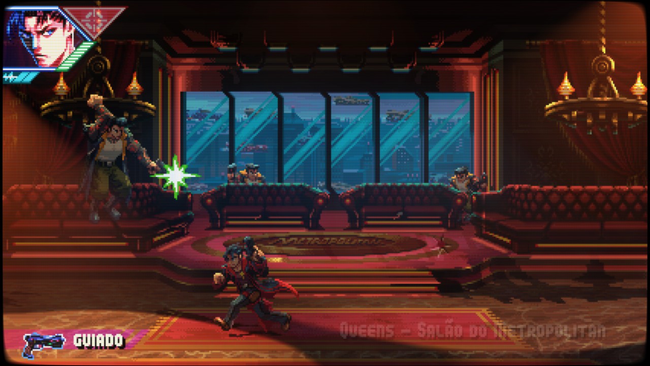 A ambientação é um dos pontos altos do jogo. A Nova York de 2055 é viva, pulsante e opressiva. Os cenários variam entre becos infestados de gangues, estações de metrô abandonadas, clubes noturnos decadentes e até zonas industriais dominadas por milícias automatizadas. Tudo isso é apresentado com uma estética pixelart caprichada, que mistura o charme retrô com uma paleta de cores vibrantes e sombrias.