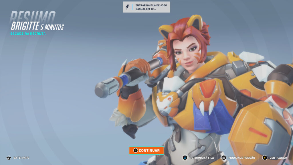 A skin reforça a identidade de Brigitte como protetora e lutadora de curta distância.