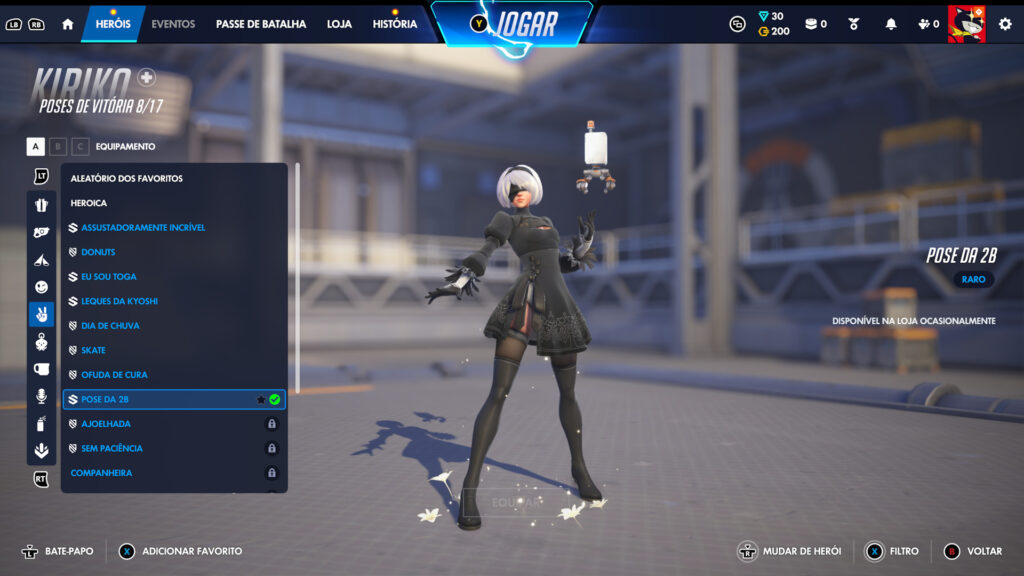 A skin combina perfeitamente com a agilidade da heroína, criando uma fusão impecável entre o estilo de combate de Kiriko e a presença marcante de 2B. É, sem dúvida, a estrela do pacote.