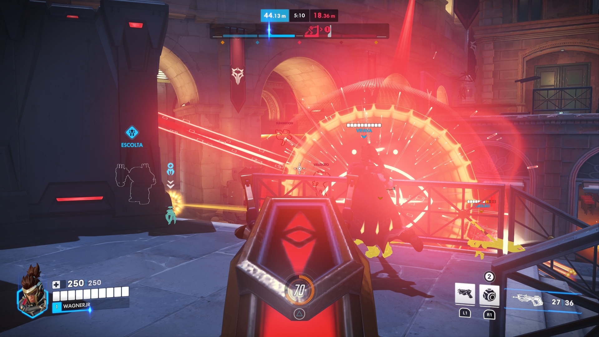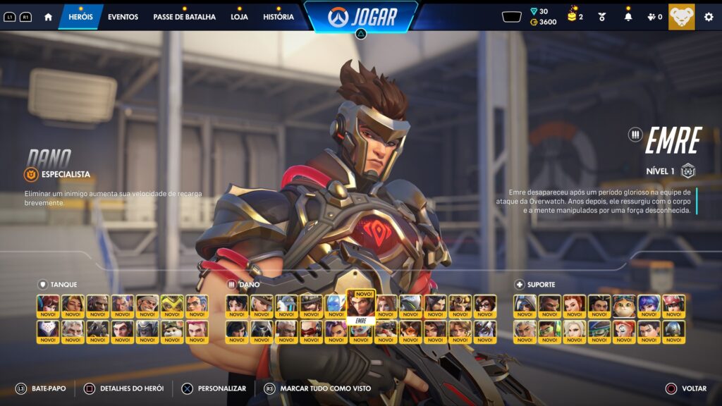 Emre é um DPS técnico, com habilidades que recompensam precisão e timing. Ele funciona como uma ponte entre heróis como Cassidy e Sojourn, oferecendo mobilidade moderada e alto potencial de dano em médio alcance. Jogadores habilidosos vão extrair muito dele.
