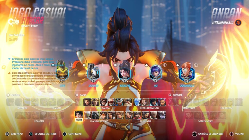 Anran é pura agressividade. Seu kit favorece flancos rápidos e eliminações explosivas. Ela é ideal para quem gosta de jogar no limite, buscando oportunidades de pick-offs e desestabilizando a backline inimiga.