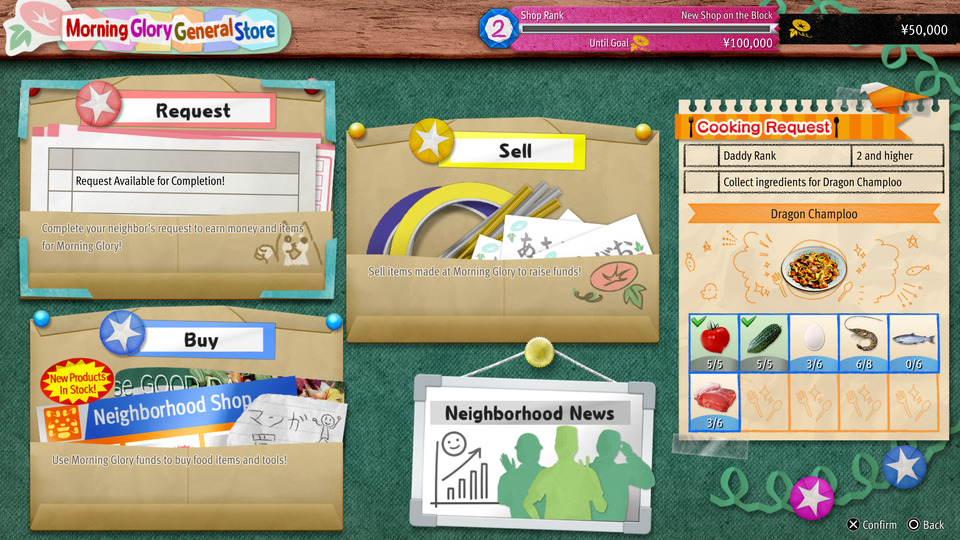 - Mercado do Morning Glory: venda itens produzidos com as crianças para melhorar o orfanato e comprar novos recursos.