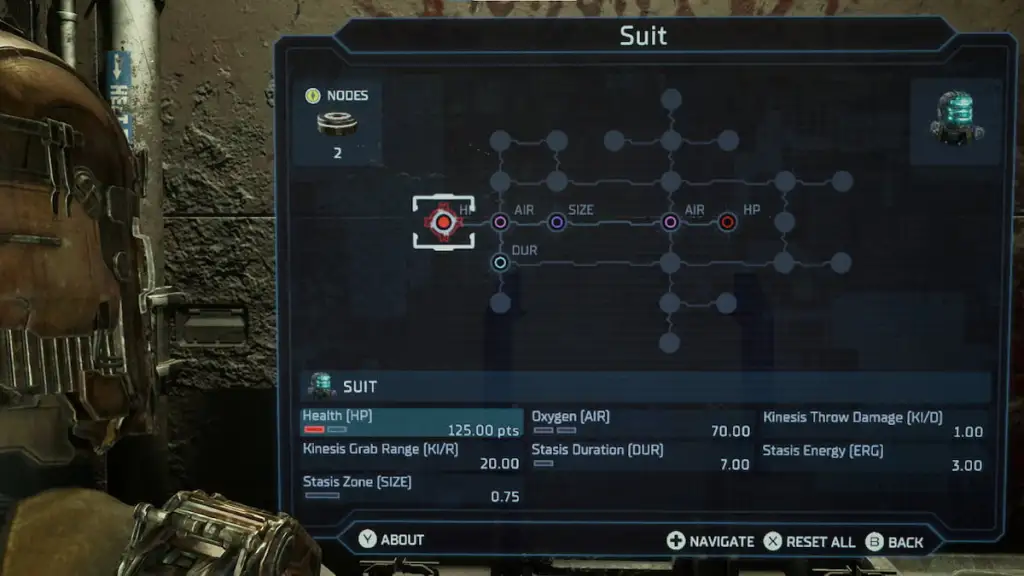 - Durante a exploração em Dead Space (2023), é possível encontrar peças de armas que são utilizadas para desbloquear mais circuitos de melhorias nas armas na bancada. Em contraste, no título original, todos os circuitos já estavam liberados, cabendo ao jogador apenas encontrar os nódulos de poder.