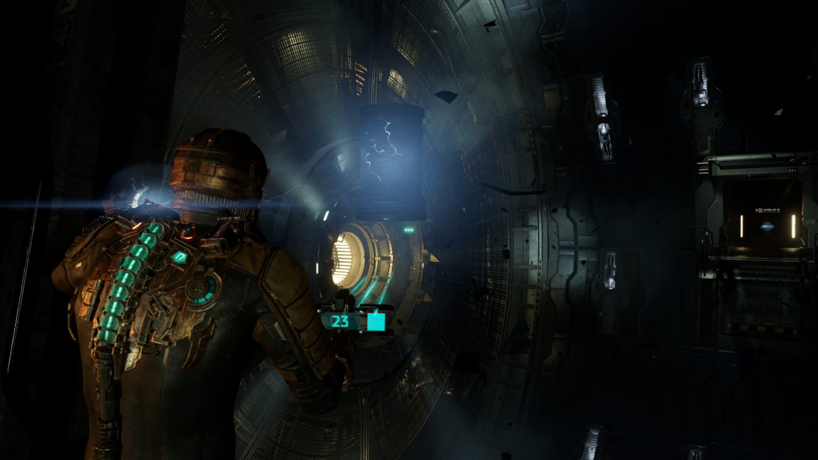 - A gravidade zero em Dead Space (2023) mantém a mesma essência vista em Dead Space 2 e 3. No jogo original de 2008, o sistema de áreas com gravidade zero era bastante simples, exigindo apenas que o jogador mirasse em uma superfície e pressionasse um botão para que Isaac “voasse” até lá. Em outras palavras, o jogador só tinha controle sobre Isaac enquanto ele estava se movendo em uma superfície e não podia controlá-lo ativamente durante seu “voo” em gravidade zero. No entanto, em Dead Space (2023), é possível controlar ativamente Isaac durante seu “voo”, utilizando a mesma mecânica introduzida originalmente em Dead Space 2 (2011), proporcionando mais liberdade ao jogador.