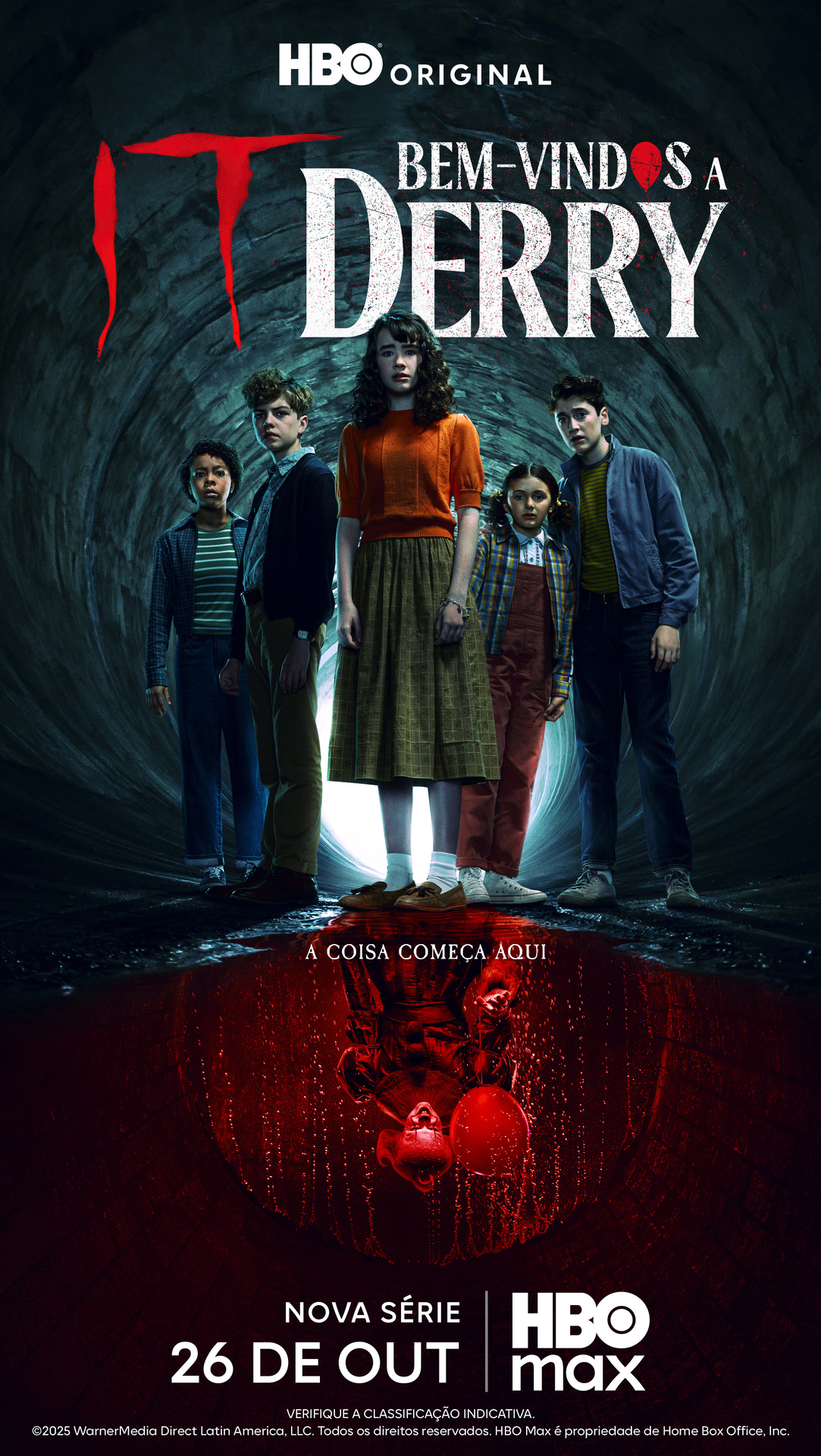 A HBO revelou o trailer oficial e o pôster de sua nova série original IT: Bem-Vindos a Derry, ambientada no universo criado por Stephen King. A produção estreia em 26 de outubro na HBO Max e no canal HBO, com episódios semanais aos domingos até o encerramento da temporada em 14 de dezembro.